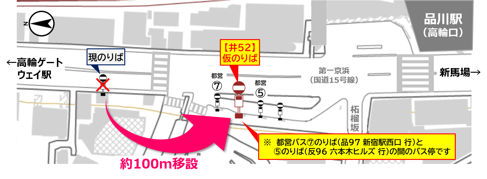 【品川駅】バス停の仮移設について(高輪ゲートウェイ方向)