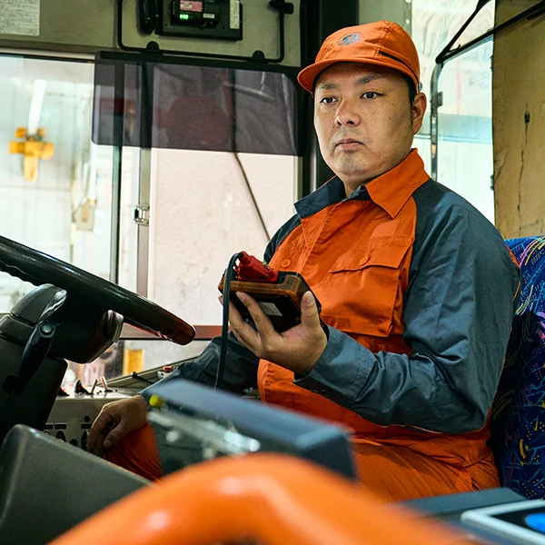 バスには運賃機など、乗用車にはない機器も数多くあります。もし故障したら、部品の交換や簡単な整備を行って、使える状態にすることが重要です。わからないことがあればまず自分で調べ、その後先輩に聞くなどして、必ず正しいやり方を確認して作業するように心がけています。