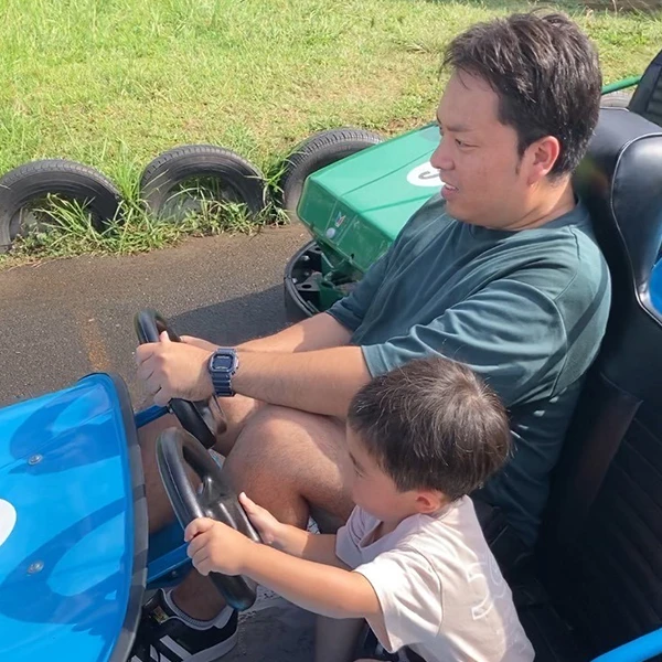 3歳の子どもを連れて、家族3人で公園に行くのが休日のル―ティーンです。車で少し遠出をして、三輪車を借りて走れる専用コースや、古い消防車や電車が置いてある子どもが大好きな公園まで行くこともあります。家にいる時は子どもとゲームを楽しんでいます。家族で過ごす時間が増えたのは、東急バスに転職したからです。