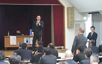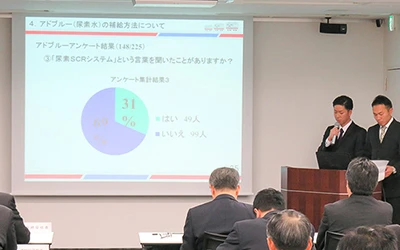 階層や営業所ごとに各3名ほどのチームを編成。半年間、チームで生産性向上のための改善点などを話し合い、毎年12月に全チームが提案内容を発表する場を設けています。30年近く続いている伝統的な活動です。