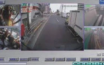 ドライブレコーダーで車内外の様子を常時記録し、発生した事故の原因究明やお客さまサービスに活用しています。また、デジタルタコグラフから乗務員の運転特性を把握し、安全運転と経済運転のための指導を実施しています。